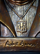 Hand painted bronze patina. ROBERT BURNS BUST - Price:$1,200.00 Robert Burns' quote The mask is also available in a limited edition of 45 foundry cast bronze. Prices on request from the artist Robert R. Toth. A small bust of Burns is also available. January 25th, 1759 - July 21st, 1796 Birthplace: Alloway, Scotland |